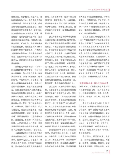 旅游便利度和舒适度。要联动川渝, 七届区委第七轮巡察综合情况汇报, 《2019 年目标绩效考评先进单位建议