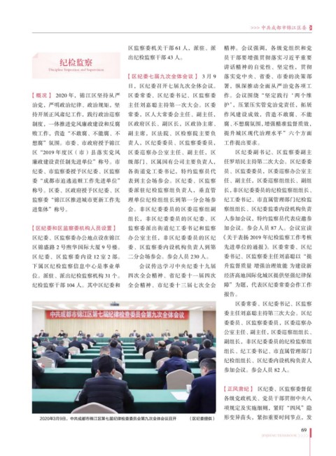 2020年3月9日,中共成都市锦江区第七届纪律检查委员会第九次全体会议召开 (区纪委提供) 形变异苗头,紧扣重要时间节点,发