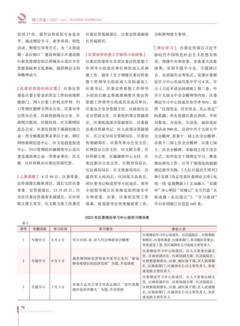 能部门,列入区委工作机关序列。归 思想工作领导小组成员及成员单位。 理论学习中心组成员参学率 95%。按