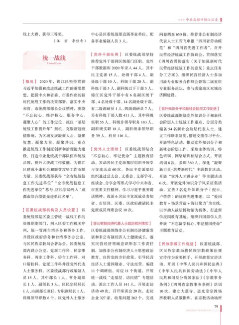 【概况】 2020 年,锦江区坚持贯彻 处级干部 10 人、科级干部 20 人、副 川渝专业服务合作峰会暨第二届重庆