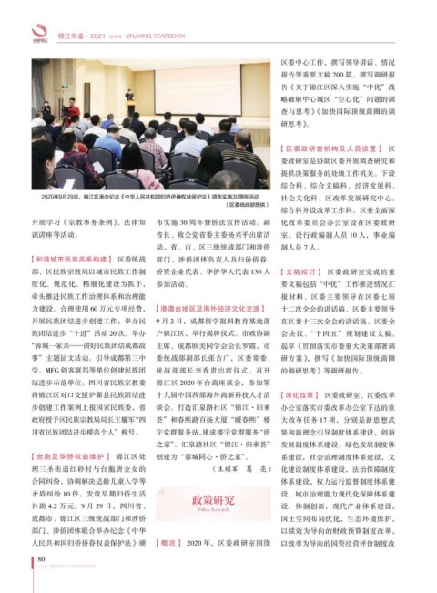 2020年9月29日,锦江区承办纪念《中华人民共和国归侨侨眷权益保护法》颁布实施30周年活动 社会文化科、区改革发展研究中心。