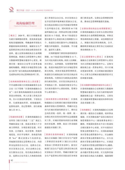 【概况】 2020 年,锦江区根据街道 整后的 11 个街道,即 16 个街道综合 调机构全生命周期管理机制,审核议