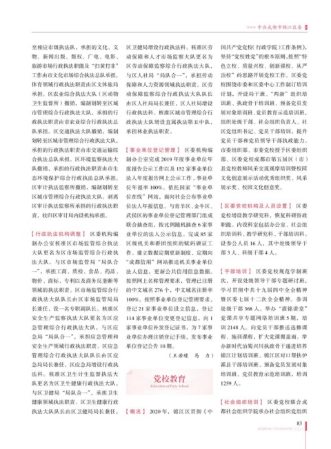 执法大队队长由区卫健局局长兼任, 【概况】 2020 年,锦江区贯彻《中 都社会组织学院承办社会组织党组织