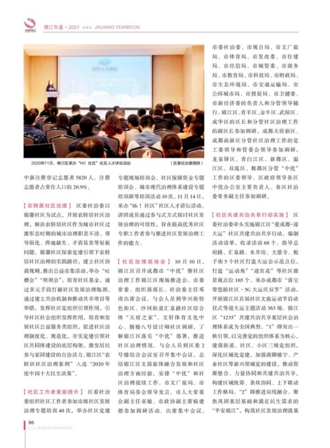 2020年11月,锦江区承办“Hi!社区”社区人才讲坛活动 (区委社治委提供)