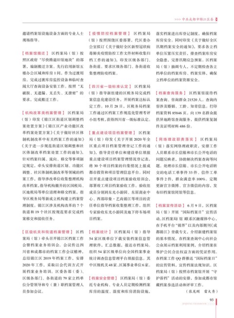 【区级机关和街道档案管理】 区档 【档案统计】 区档案局(馆)指导 都锦江》登载专文,介绍新建档案馆