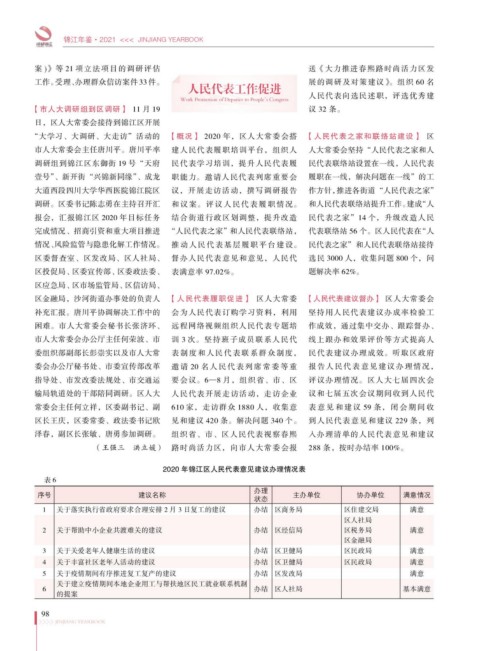 2020 年锦江区人民代表意见建议办理情况表