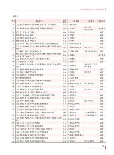 序号 建议名称 主办单位 协办单位 满意情况