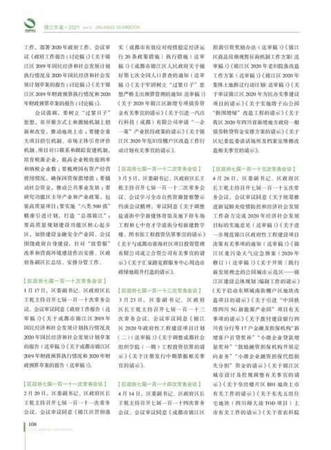 工作,部署 2020 年政府工作。会议审 实〈成都市有效应对疫情稳定经济运 招商引资奖励办法(送审稿)》《锦江