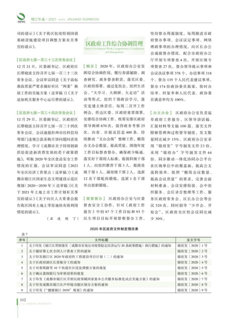 理情况,学习《成都市关于持续创新 办文办会数量,提高质量。围绕年度 用“锦府发”字号制发文件 23 份,