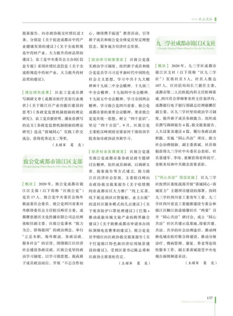 息专报》采用社情民意信息《关于全 实政治学习制度,组织班子成员和致 【概况】 2020 年,九三学社成都市