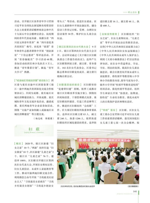 活动,召开锦江区各界青年学习贯彻 带头人”等活动,促进妇女就业。在 道妇联主席 16 人、副主席 48 人、执