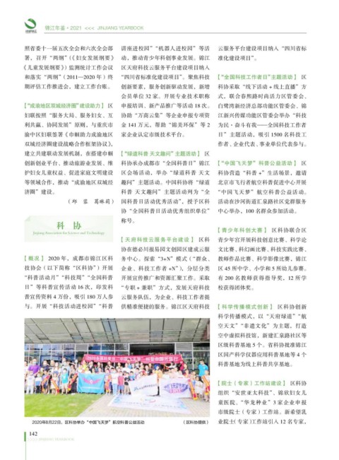 【概况】 2020 年,成都市锦江区科 务中心。探索“3+N”模式(“群众、 教师作品比赛、科学影像比赛,锦江