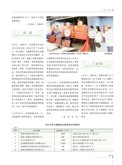 会,慰问侨界人士。与重庆市渝中区 宣传涉侨政策。 【概况】 2020 年,成都市锦江区工