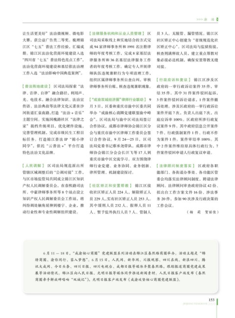 册。锦江区法治化营商环境建设入选 师的年度考核工作,完成 8 家基层法 核查刑满释放人员,建立重点帮教对