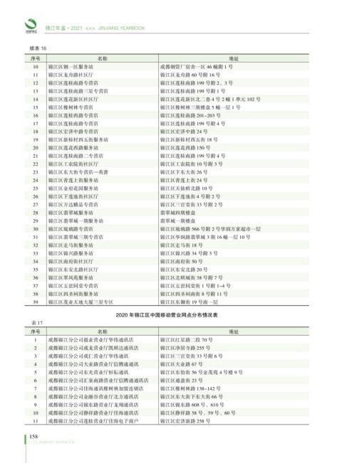 2020 年锦江区中国移动营业网点分布情况表