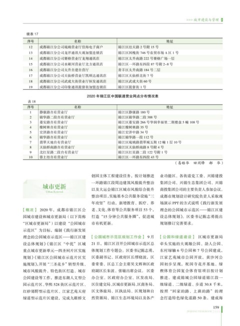 【概况】 2020 年,成都市锦江区公 老、文化、体育等公共服务项目 53 个, 理念的公园城市示范区——锦江区建