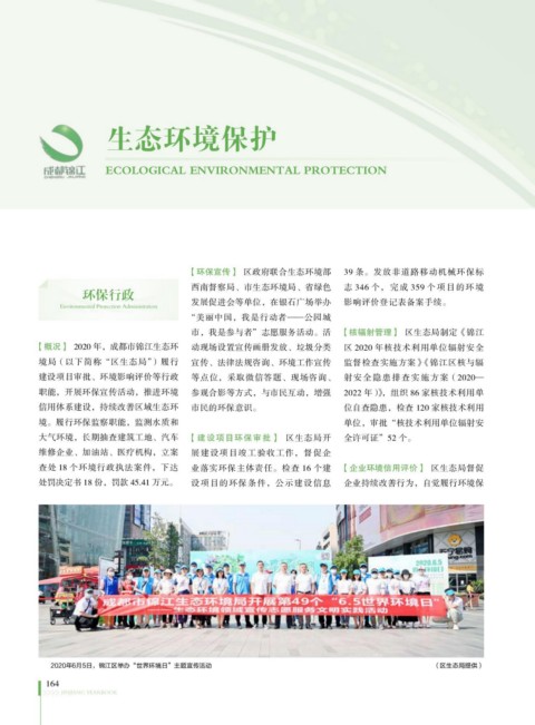 【概况】 2020 年,成都市锦江生态环 动现场设置宣传画册发放、垃圾分类 区 2020 年核技术利用单位辐射安全