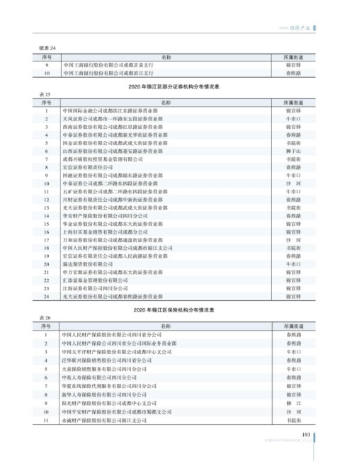 2020 年锦江区部分证券机构分布情况表