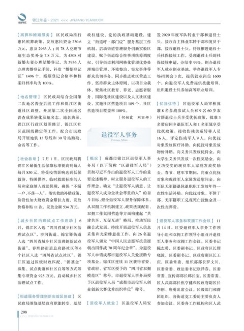 二次地名普查后续工作和锦江区街 设,实施社区营造项目 189 个,社区 【优抚优待】 区退役军人局审核批