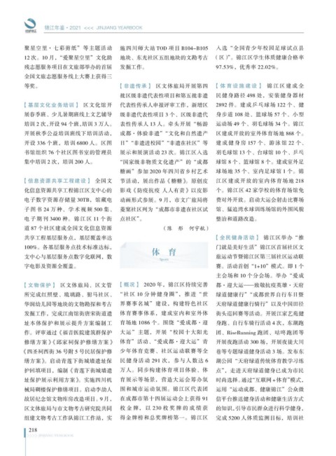 等奖。 【非遗传承】 区文体旅局开展第四 【 体 育 设 施 建 设 】 锦 江 区 建 成 全