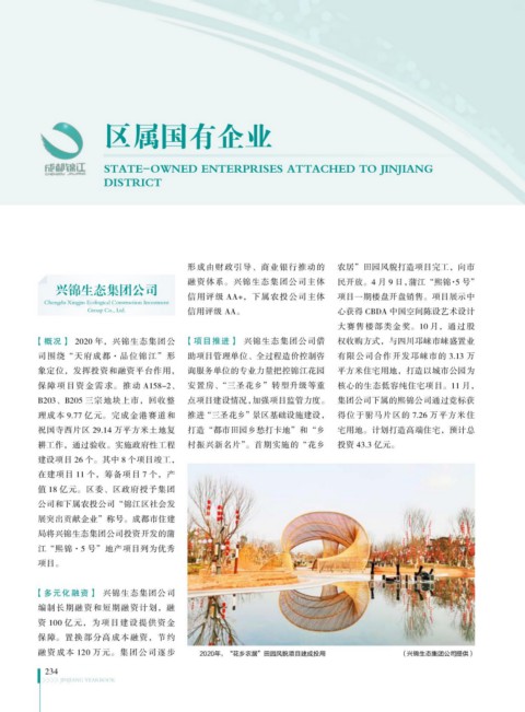 融资成本 120 万元。集团公司逐步 2020年,“花乡农居”田园风貌项目建成投用 (兴锦生态集团公司提供)