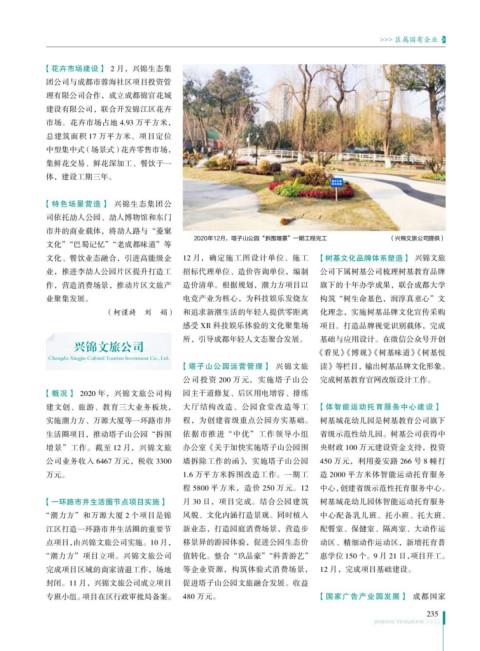 封闭。11 月,兴锦文旅公司成立项目 促进塔子山公园文旅融合发展。收益