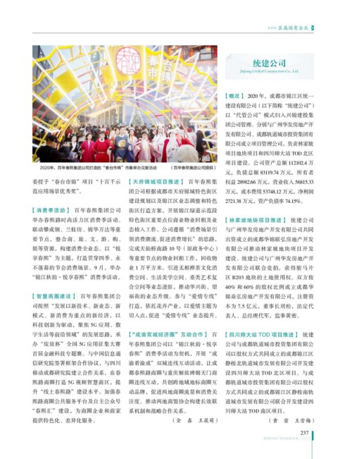 【智慧商圈建设】 百年春熙集团公 福街的业态升级。参与“爱情专线” 锦焱弘房地产开发有限公司,注册资