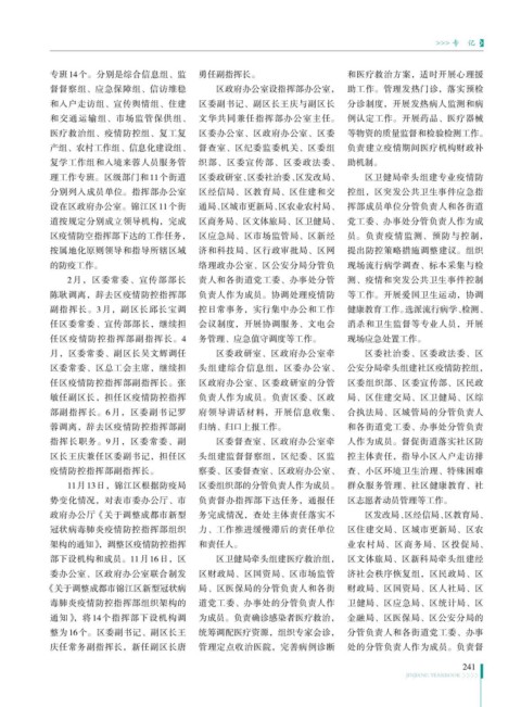 2 月,区委常委、宣传部部长 责人和各街道党工委、办事处分管 测、疫情和突发公共卫生事件控制