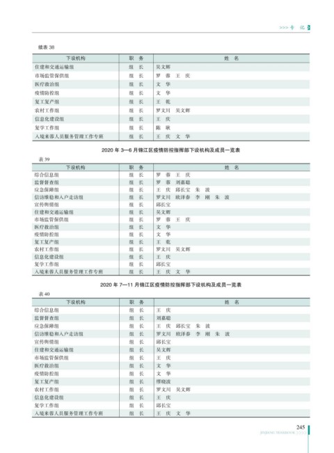 2020 年 7—11 月锦江区疫情防控指挥部下设机构及成员一览表