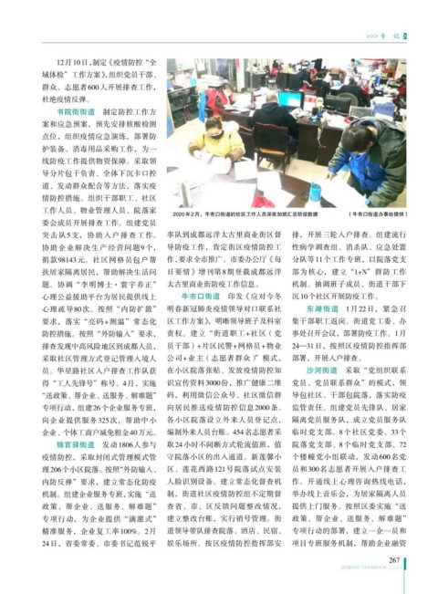 向企业提供服务325次,帮助中小 各小区院落设立外来人员登记点, 隔离党员服务队,成立党员服务队