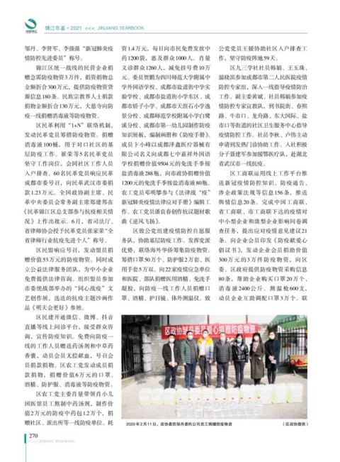 赠社区、派出所等一线防疫单位。耗 2020年2月11日,政协委员邹丹委托公司员工捐赠防疫物资 (区政协提供)