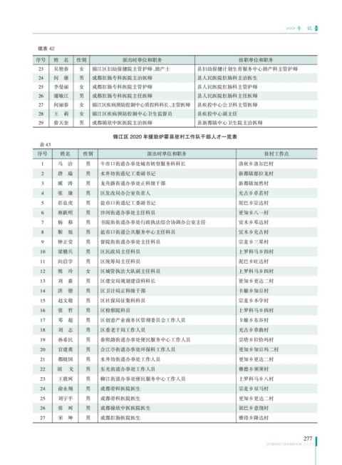 锦江区 2020 年援助炉霍县驻村工作队干部人才一览表