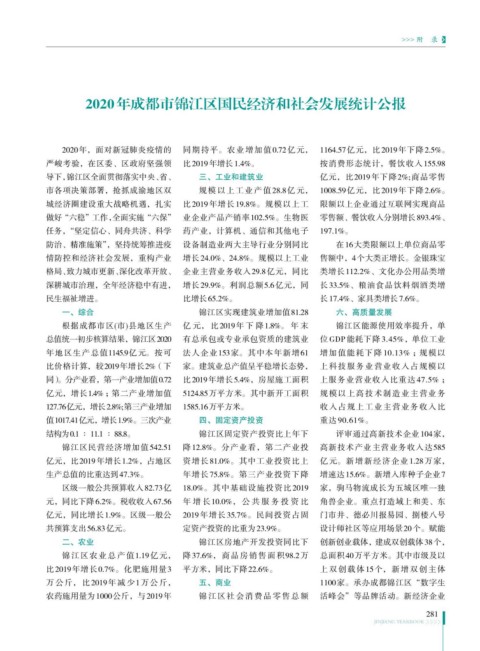 导下,锦江区全面贯彻落实中央、省、 三、工业和建筑业 亿元,比2019年下降2%;商品零售