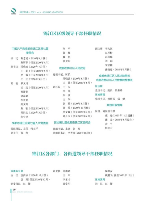 锦江区各部门、各街道领导干部任职情况