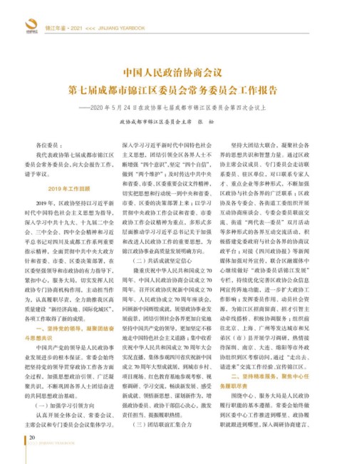 ——2020 年 5 月 24 日在政协第七届成都市锦江区委员会第四次会议上