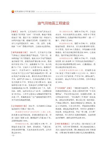 岭四联合站工程。设计规模 30 万吨 / 年,功 【HSE 体系建设】 全年未发生一般 B 级及以上事