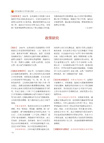 【概况】 2024 年,长庆油田公司政策研究工作贯 国内外石油行业发展信息、集团公司等上级部门