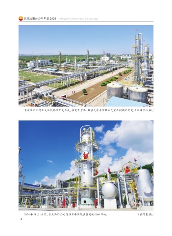 长庆油田分公司年鉴 2025 CHANG QING YOU TIAN FEN GONG SI NIAN JIAN 2025 长庆油田公司加大油气勘探开发力度,推进页岩油、致密气等非常规油气资源规模化开发。(新闻中心 供) 2024 年 11 月 25 日,长庆油田公司连续五年油气当量突破 6000 万吨。 (黄陈晨 摄) ·4·