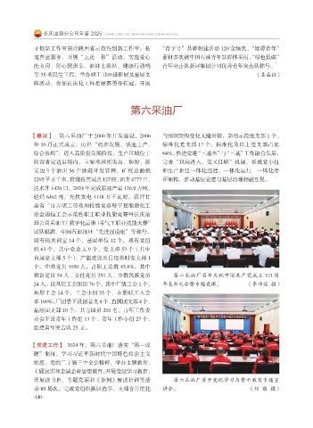 预备党员 34 人、女性党员 251 人、少数民族党员 第六采油厂召开庆祝中国共产党成立 103 周