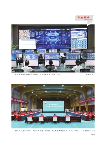 科 技 创 新 KE JI CHUANG XIN 长庆油田公司获评数字化转型成熟度国家标准“四级”单位。 (张涵 摄) 2024 年 5 月 9—10 日,长庆油田公司“大监控”模式改革现场会在第八采油厂召开。 (新闻中心 供) ·11·