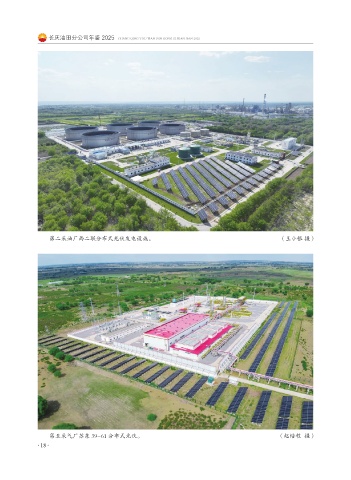 长庆油田分公司年鉴 2025 CHANG QING YOU TIAN FEN GONG SI NIAN JIAN 2025 第二采油厂西二联分布式光伏发电设施。 (王小银 摄) 第五采气厂苏东 39-61 分布式光伏。 (赵培程 摄) ·18·