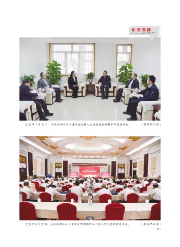 企 业 党 建 QI YE DANG JIAN 2024 年 3 月 13 日,长庆油田公司召开欢迎全国人大代表张红玲履职归来座谈会。 (新闻中心 供) 2024 年 8 月 23 日,长庆油田公司召开学习贯彻党的二十届三中全会精神宣讲会。 (新闻中心 供) ·19·