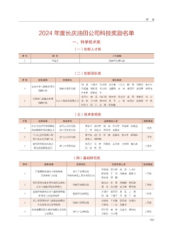 2024 年度长庆油田公司科技奖励名单