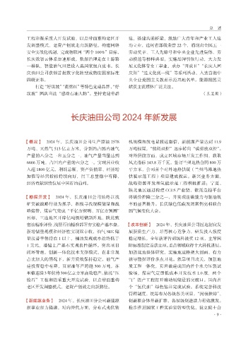 密油精准评价、浅层石油精准部署夯实稳产基本盘。 【改革创新】 2024 年,长庆油田公司因地制宜发