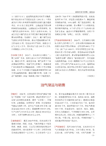 【概况】 2024 年,长庆油田公司年油气储运与销 米。累计建成集输站场共计 1905 座(联合站 85