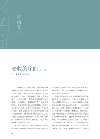希望。一株株挺拔、一穗穗饱满的麦子,犹如英勇 的成长历程,是时间与生命的共同演绎。小麦的