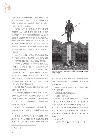 人民公园东门前矗立的无名英雄铜像,背后 上……历年来四川贡献于抗战的粮食占全国征粮总