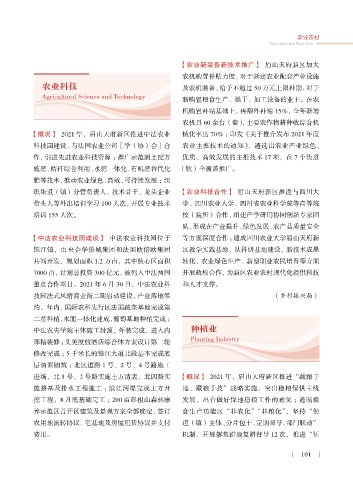 【概况】 2021 年,眉山天府新区推进中法农业 械化率达 70% ;印发《关于推介发布 2021 年度