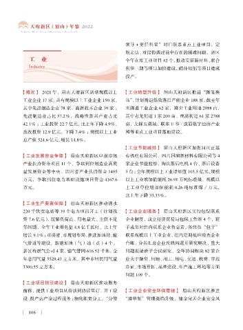【概况】 2021 年,眉山天府新区新增规模以上 【工业转型升级】 眉山天府新区推进“腾笼换