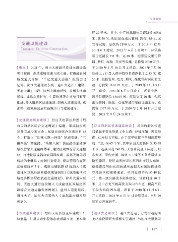 【概况】 2021 年,眉山天府新区推进交通设施 于 2020 年 1 月 10 日开工建设,2021 年 7 月 20